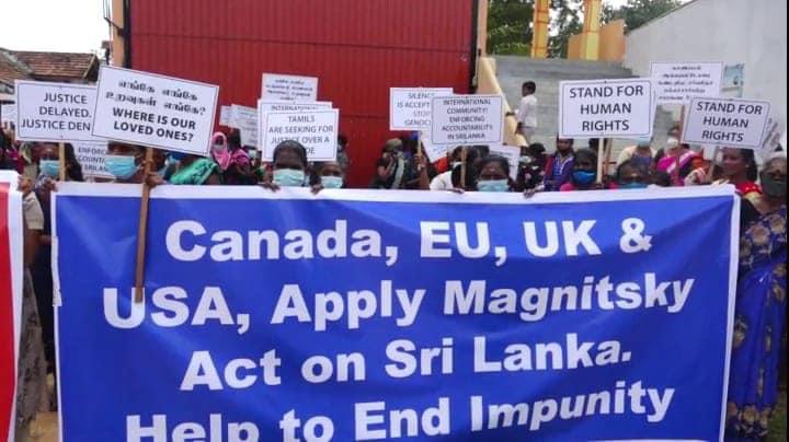 Families of the disappeared demand sanctions and Sri Lanka to be sent to ICC. (Photo: Tamil Guardian)