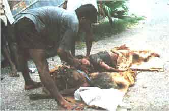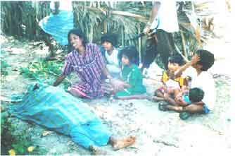 A man grieving the death of children"In May this year (1995), President Chandrika Kumaratunga declared that it may be necessary to launch an all out attack in the Jaffna peninsula and that this 'would mean a lot of civilian casualties' and 'the place would be wiped out'. In May, June and July the Sri Lanka armed forces launched a genocidal onslaught on the Tamil people in the Tamil homeland in the North-East."